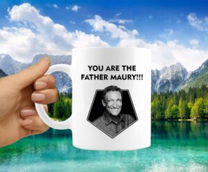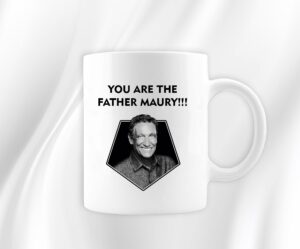 Maury You Are the Father Mug is made from a premium hard coat finished available in 11oz, 3.7″H x 3.7″W x 3.2″D 10.2″ Circumference and 15oz, 4.5″H x 4.5″W x 3.4″D 10.75″ circumference. The mug reminds us that justice for single parents is possible. The proof is on Maury’s hands and justice can be served for single parents who have suffered the piling bills taking care of their child without the other parent’s support. Support a good cause with the You are the Father Mug!